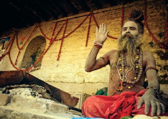 They started to arrive a fortnight before Shivaratri, and they piled up amongst the muths and the small shrines, smoking their ganja in blissful torpor, joking with the tourists in their own languages (one Shivaratri I chatted with an elderly and jovial French speaking Baba), holding up rocks with their penises, and in general adding to the madcap ambience of the already otherworldly place. One Shivaratri, we finally managed to enter the inner shrine of Pashupati along with a long line of other devotees, through the gate that leads into the labyrinth. In the main courtyard I waited breathlessly for a glimpse of the fabled Aghori Babas, who inspire awe and fear because they live in the cremation ghats. The Aghori are known to taste human flesh from the corpses in order to battle and transcend their deepest human feeling of revulsion, in order to achieve absolute mental detachment. I was met by the sight of a group of impassive unclothed ash-smeared sadhus who had monopolized the main courtyard for the night. A muscular sadhu stood on one leg in a dramatic posture, naked as the day he was born—with only a golden watch on his wrist as accoutrement. The troupe looked more theatrical than spiritual, but of course that was part of the teeming, heaving maya, or cosmic theater, that constitutes this night of Shiva.