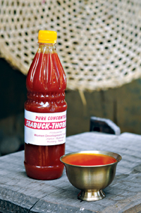 A decade earlier, Ayurvedic doctors started using sea buckthorn for several medicinal purposes while villagers used its wood for fire. Soon, they learnt to make juice from the sea buckthorn fruit. Three years ago, the completely community-based Women Development Committee, took on the responsibility of manufacturing the sea buckthorn juice commercially. The committee of eleven members is responsible for everything from the hygiene check of the fruit collectors to labeling the juice bottles.