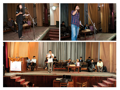 The US Embassy last December brought three renowned slam poets, Danny Solis, Karen Finnyfrock, and Matt Mason as part of their “Cultural Envoys Program” to Nepal. The Embassy collaborated with Quixote’s Cove Bookshop in Jawalakhel to organize poetry reading, writing, and teaching workshops for students, teachers, librarians and the general public in Kathmandu, Biratnagar and Itahari. As a build up to this, Quixote’s Cove organized Nepal’s first ever slam poetry reading in India-Nepal Library as part of the latter’s monthly Tavern Tales Series where the members of the bilingual independent Hip-Hop group Lyrics Indy (Yanik Shrestha, Aidray, and Gaurav Subba) performed with another poet Aditi Shrestha and I. There was much excitement within the poets and a euphoric audience. By the end of the next two weeks these poets formed “Word Warriors: A Slam Poetry Group” along with few of the standout young poets who won Nepal’s first under-21 poetry slam contest, marking yet another historic milestone in Kathmandu’s vibrant and emerging creative scene. The Word Warriors have since performed in various venues in the capital – from casual pubs and bars to musical concerts, book launches, educational institutions, and commemorative performances to an ever increasing and passionate audience.