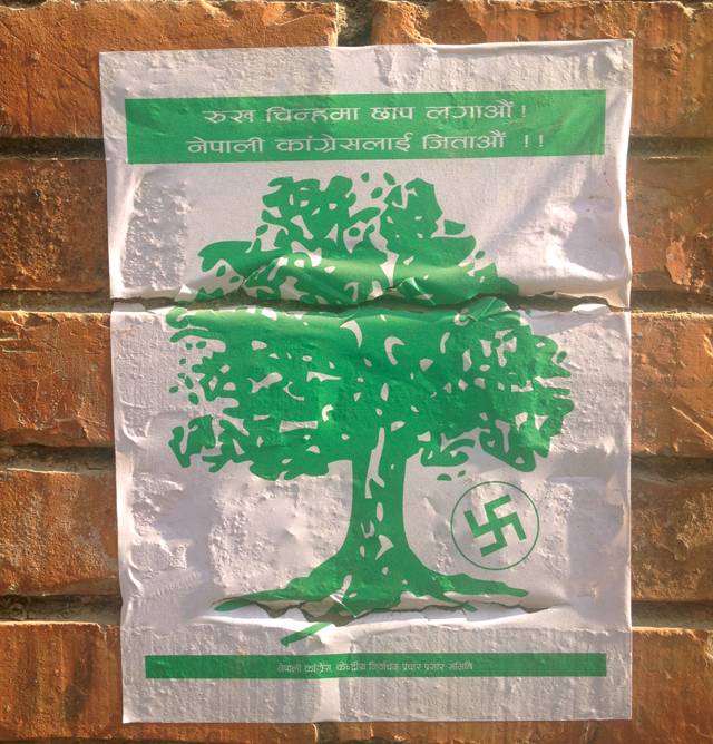 One of the most common symbols that we all saw during the recently concluded elections to the second constituent assembly in Nepal was the Swastika. All the ink stamps used across the country had the Swastika in a circle that every voter dipped in the ink pad and placed it next to the symbol of the party they chose to represent them. The same symbol was used in the pink and blue ballot sheets. A large percentage of the 12.1 million eligible voters cast their votes by using this symbol or seal. The Oxford dictionary says Swastika is a term derived from the Sanskrit word svasti which means well being. “Su” is a prefix which generally means good or auspicious. In the ancient Aryan tradition, the Swastika is a symbol displayed prominently in homes, walls, doorways and even account books and vaults to bring good fortune. It is a mystic symbol and considered sacred and believed to bring good luck by invoking Laxmi – the goddess of wealth. Next time you are near a jewelry shop or gold dealer, look for the Swastika sign. It is also interesting listening to the different answers being given to the tourist by our tour guides as they point at the symbol.