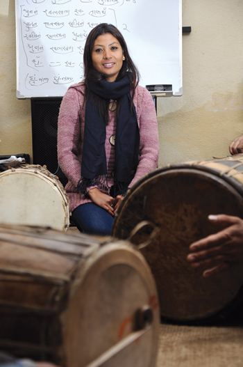 The story of how Lacchimasyu learnt the instrument is one of being at the right place at the right time. Her teacher, a German national, used to visit her locality to teach the neighborhood boys the dhime bajaa. As it turned out, her room just happened to be attached to the practice space. When others rehearsed, she listened and tapped her hands to the beat. One day, when no one was around, she went to the practice room and started banging on the drum. The teacher, who was coming up the stairs, was surprised to hear someone playing so well. He rushed up only to find the little twelve year old Lacchimasyu busy with the instrument.