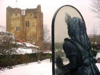 Bascom calls this ‘framing’. I call it ‘Alice in Wonderland’. A writer may choose anything of interest along the way that is worth examining. But here, Alice is peering through the looking glass at Guildford Castle in the UK.