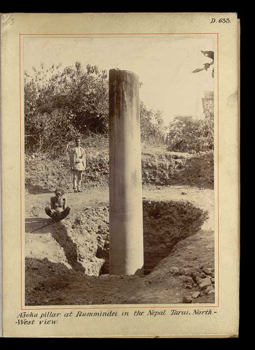 In his reply, Khadga described the saga, starting with instructions from the Prime Minister about Führer’s initial excavation of the pillar at Nigali Sagar. Khadga then went on to say that when he saw the Rummini-Lummini-Lumbini pillar near Padariya for the first time it “struck me very much for its unique shape and surroundings characteristic of Asoka-pillars.” Gen. Khadga was only too happy, he wrote, “to embrace this auspicious occasion by purposely arranging our meeting... so that I might not lose the opportunity of getting my own views regarding this monolith corroborated by a learned antiquary like you.”