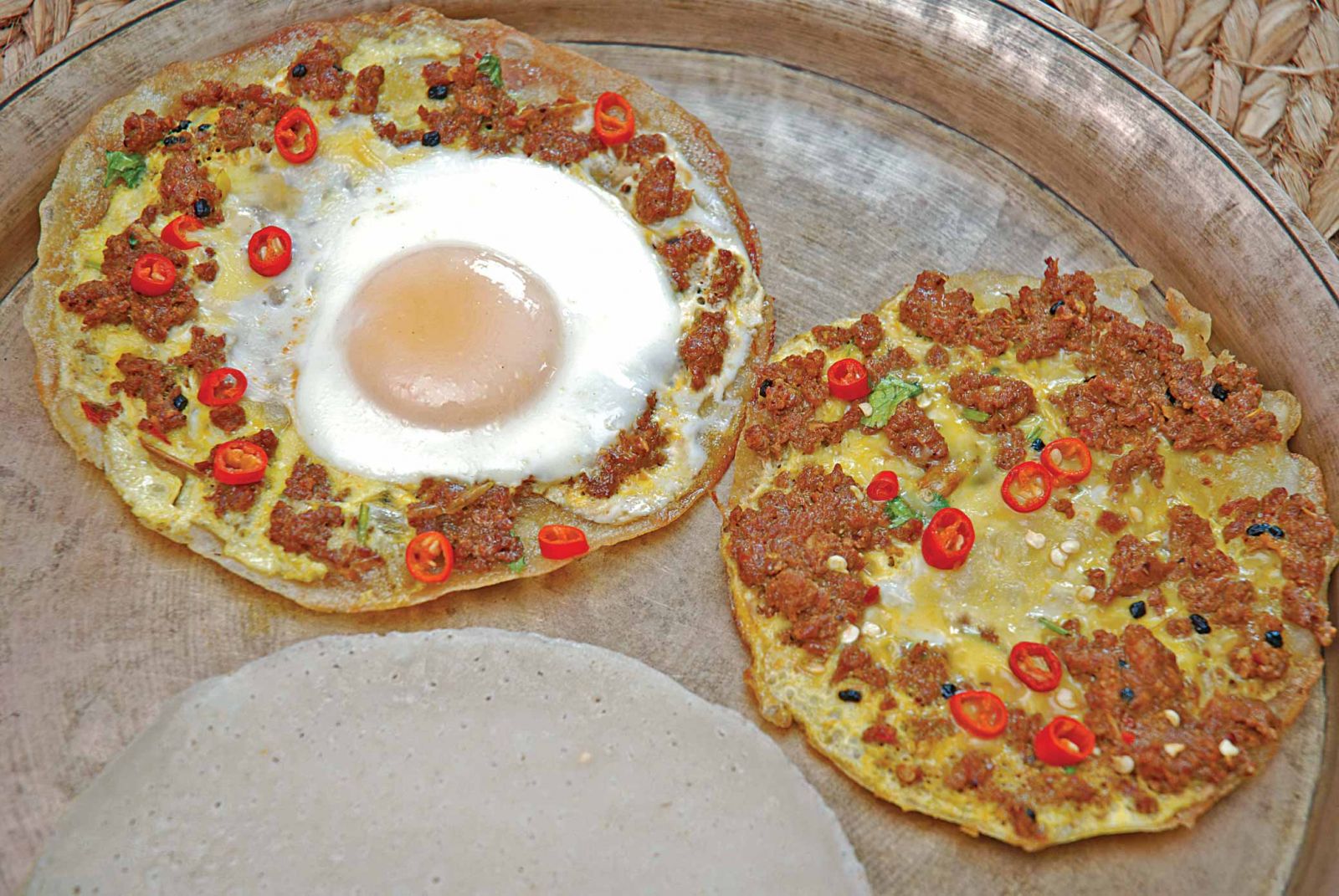 Widely known as ‘Nepali Pizza,’ chatamari is a kind of rice crepe, made simply from rice flour batter and topped with things like cheese, egg, mince meat, sausages, vegetables, lentils, beans and more. It is one of the easiest to prepare and most satisfying among Newari delicacies.