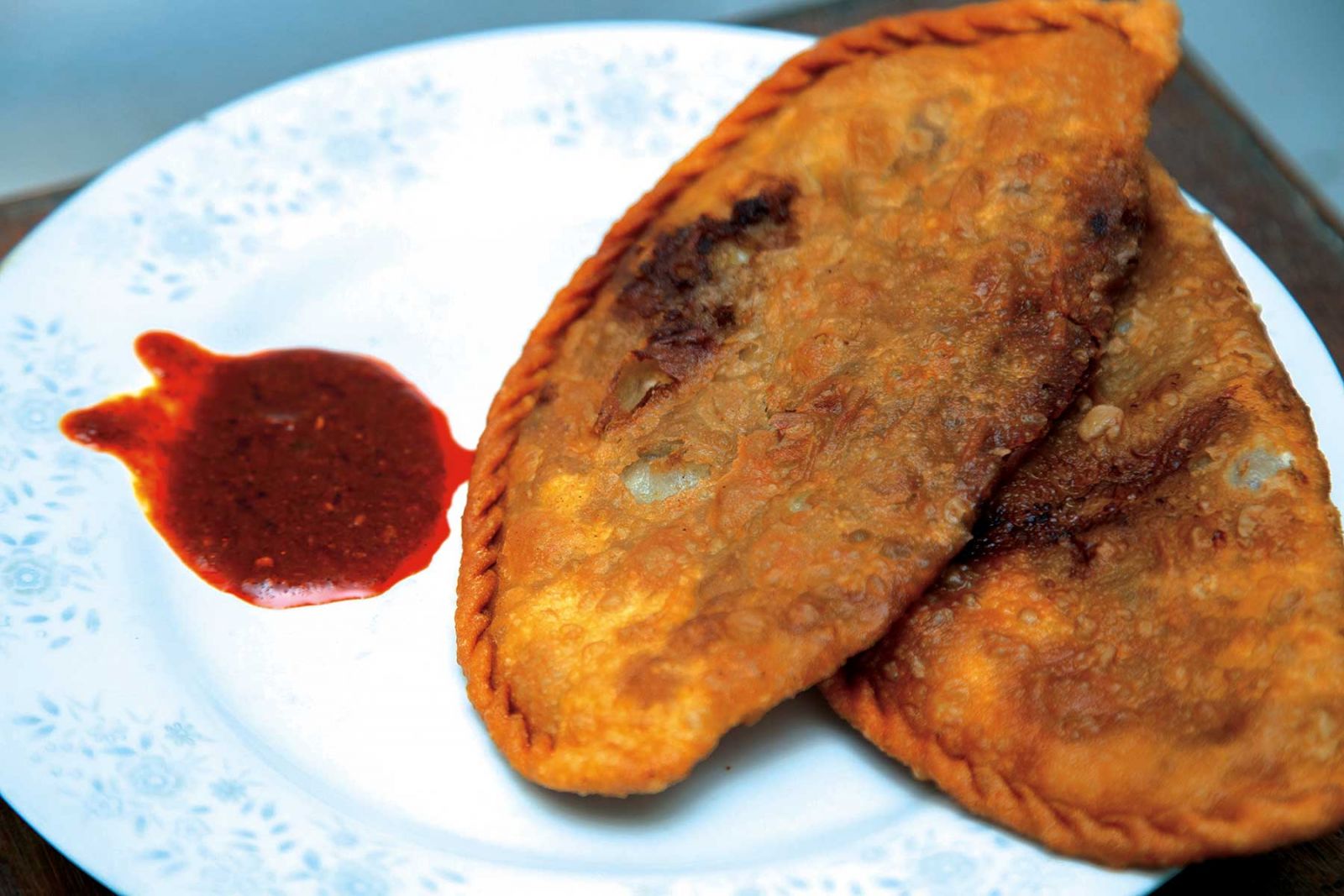 4) Sha phaley: A Tibetan bread dish stuffed with meat or vegetables. According to the internet, in central Tibet sha phaley can be eaten for breakfast, but it’s mostly had at lunch or dinner. In Nepal it is just a snack. Buff stuffed sha phaley are available almost everywhere, thought it might be harder to find the veg one. Deep fried and eaten piping hot, it makes a really crunchy sound, which can be very satisfying, at least to me.